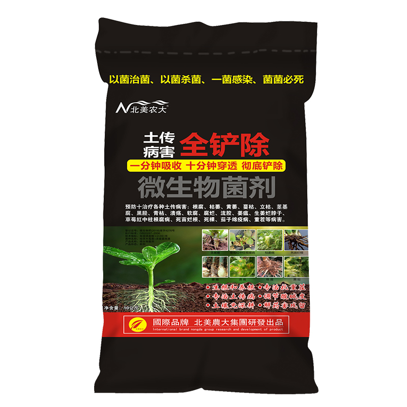 本品由美國(guó)杜克公司與中國(guó)農(nóng)科院和北美農(nóng)大集團(tuán)針對(duì)各種作物土傳病害的根腐、枯萎、黃萎、蔓枯、立枯、莖基腐、黑脛、青枯、潰瘍、軟腐、腐爛、流膠、姜瘟、生姜爛脖子、草莓紅中柱根腐病、死苗爛根、死棵、茄子綿疫病、重茬等病害而研發(fā)一種純微生物特效產(chǎn)品,對(duì)各種作物病害以菌治菌、以菌殺菌、一菌感染、菌菌必死的獨(dú)特效果,對(duì)土傳病害一分鐘吸收、十分鐘傳導(dǎo)、三十分鐘形成殺菌膜的神奇效果,是同類(lèi)普通產(chǎn)品的3-5倍,使作物重復(fù)殺菌,效果特效。