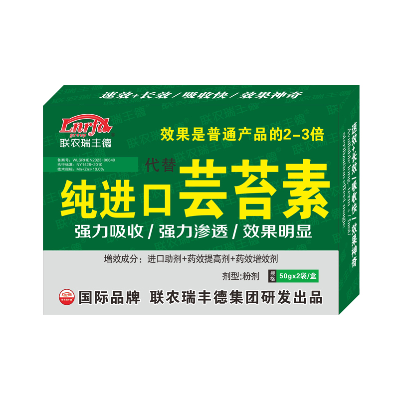 本品由聯(lián)農(nóng)瑞豐德集團(tuán)與中國農(nóng)科院研究所采用純進(jìn)口蕓苔素和進(jìn)口助劑加藥效提高劑復(fù)配而研發(fā)一種特效型進(jìn)口蕓苔素,傳導(dǎo)快、吸收快、雙重營養(yǎng)特效產(chǎn)品,對作物一秒鐘吸收,3秒鐘補(bǔ)充營養(yǎng),10分鐘傳導(dǎo)在作物各個(gè)部位,其效果是同類普通產(chǎn)品的2-3倍,使作物重復(fù)吸收,快速吸收營養(yǎng),吸收率達(dá)到98%以上。