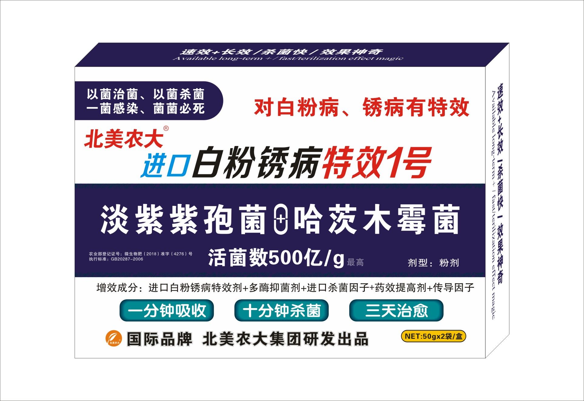 本品由北美農大集團與美國杜克公司針對白粉病、銹病而研發(fā)一種純微生物特效產品,對作物上的病害以菌治菌、以菌殺菌、一菌感染、菌菌必死的獨特效果,對病害一天控制、兩天恢復、三天治愈的神奇效果,是同類普通產品的3-5倍,使作物重復殺菌,殺菌率達到98%以上。